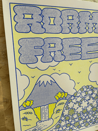 Max K's A3 print has been screen-printed in yellow and blue, on 220gsm All-Media Cartridge Paper.